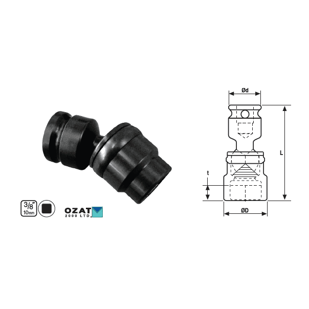 Cap cheie tubulara articulat 3/8″, varianta scurta 5/8″