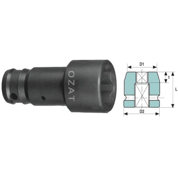 Cap cheie tubulara de impact 1″ cu profil hexagon exterior, 2 piese, standard, DIM 31