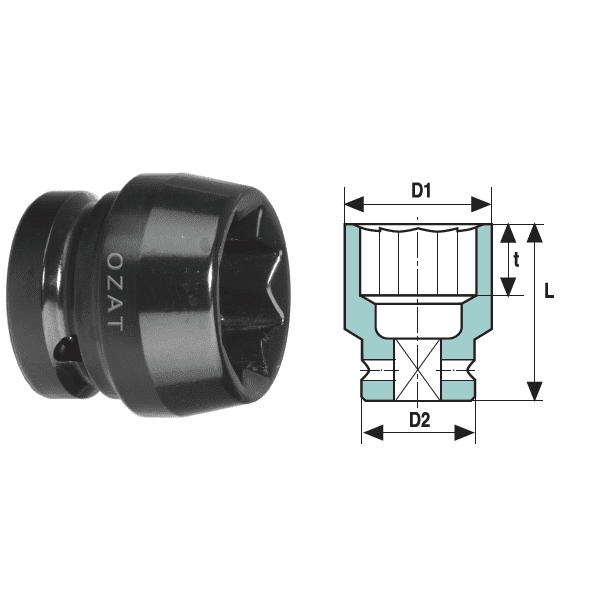 Cap cheie tubulara de impact 1″ cu profil hexagon exterior, 2 piese, standard, DIM 1/2″