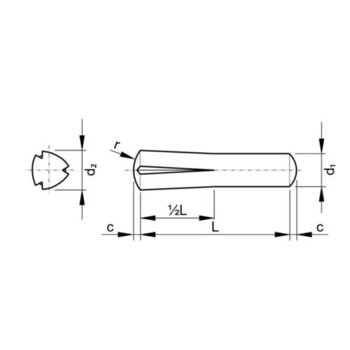 Categorie: Stift conic partial crestat longitudinal DIN 1472